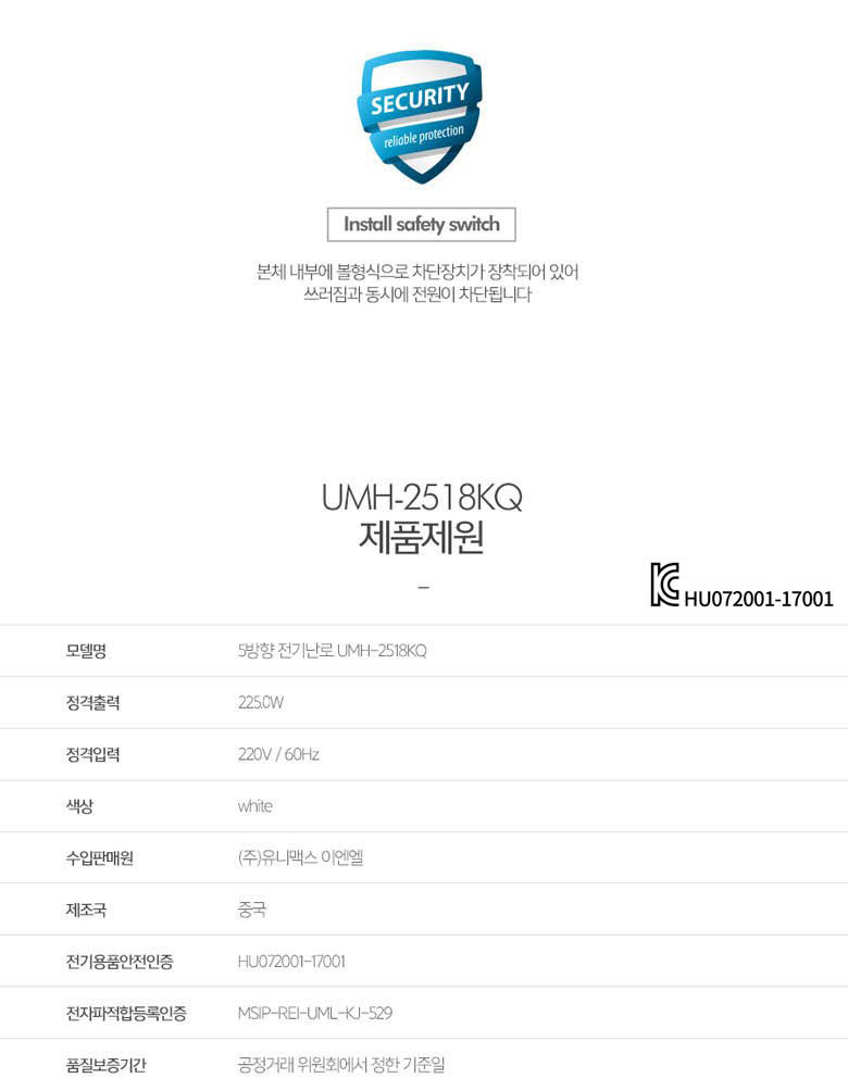 모델명 : 5방향 전기난로 UMH-2518KQ