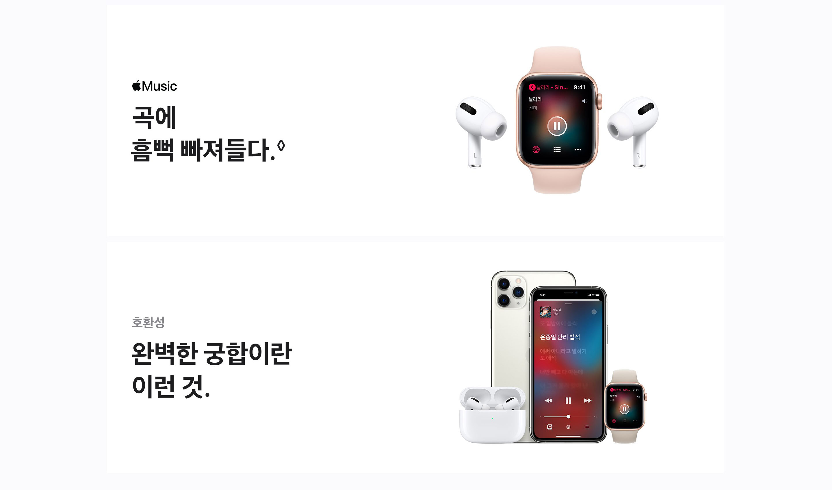 두 쌍의 AirPods으로 한 음악을 동시에 틀을 수도 있습니다.