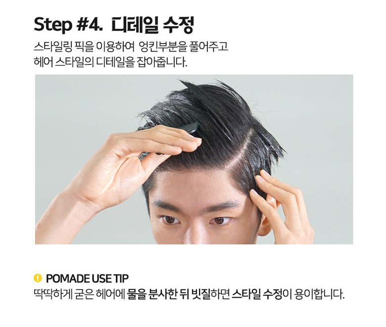 포마드는 1-2마운트의 양으로 '모발 전제를 적신다 '라고 할 수 있습니다.