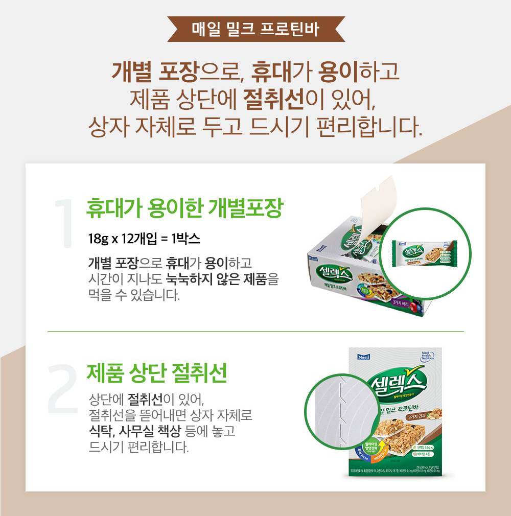 절취선을 뜯어내면 상자 자체로 식탁,사무실 책상 등에 놓고 드시기 편리합니다.
