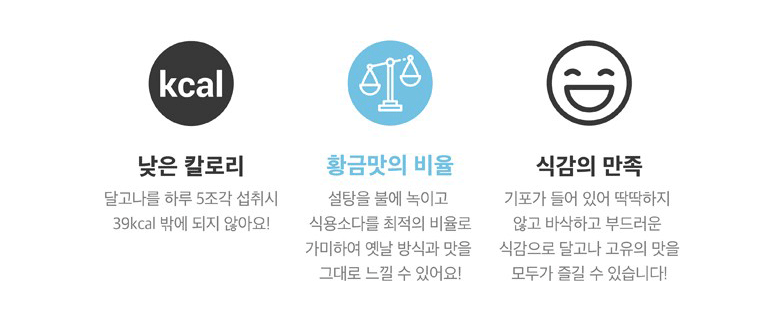 달고나를 하루 5조각 섭취시 39kcal 밖에 되지 않아요