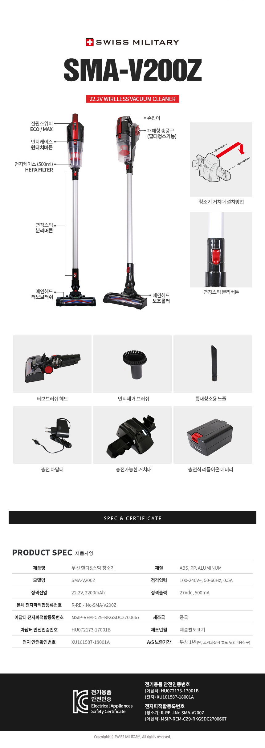 [스위스밀리터리] 무선 핸디&스틱 청소기(색상:블랙&레드) SMA-V200Z