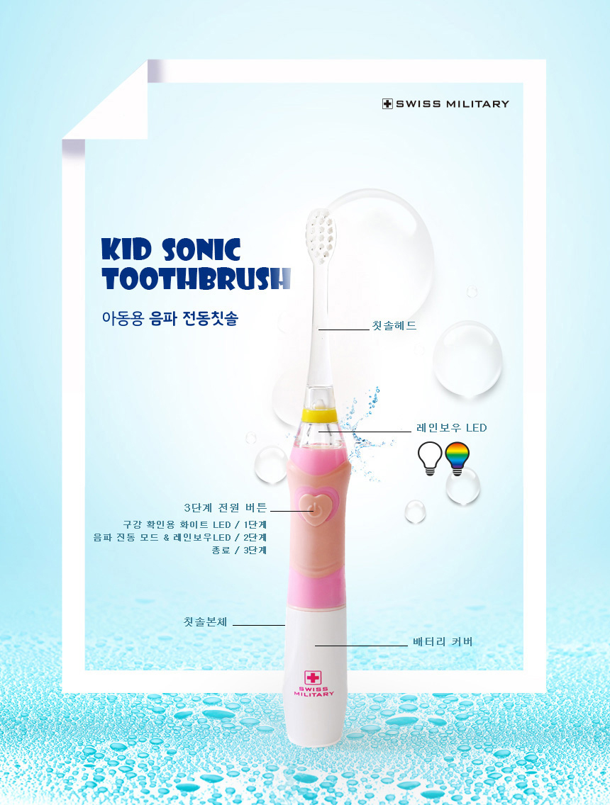 스위스 밀리터리 SM 아동용 음파 전동칫솔 (블루, 핑크) 중 택1