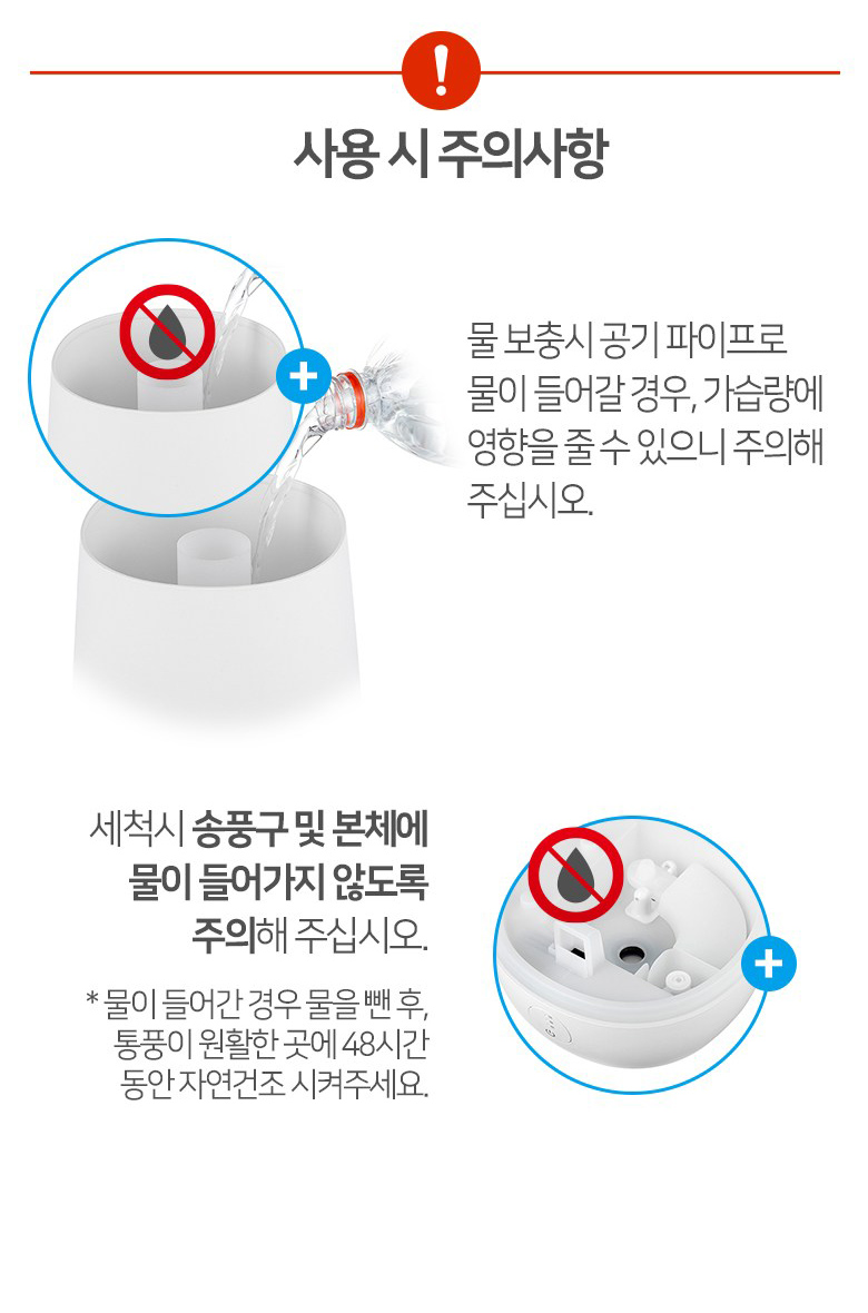 *물이 들어간 경우 물을 뺀후 ,통품이 원활한 곳에 48시간