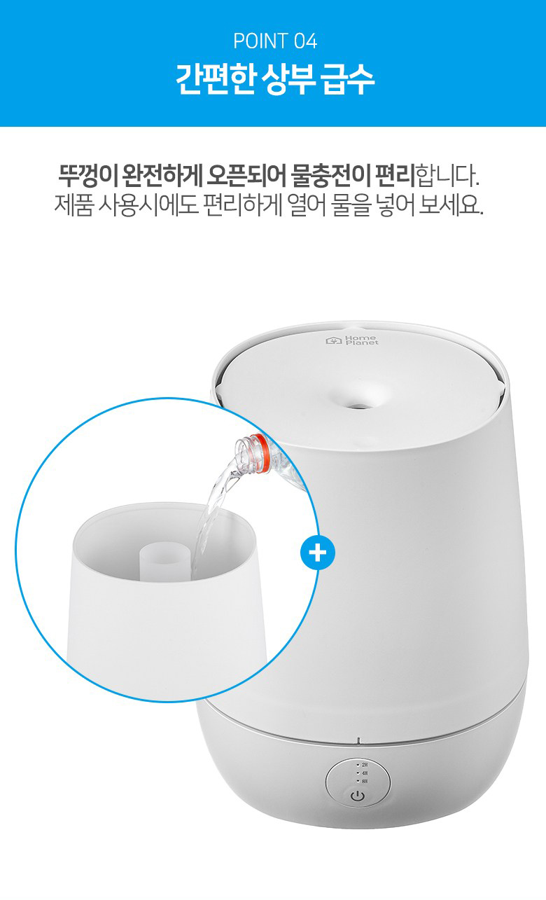 뚜껑이 완전하게 오픈되어 물충전이 편리합니다.
