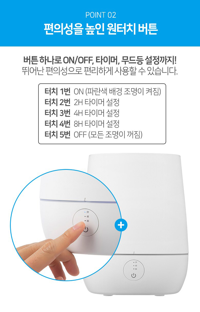 버튼 하나로 온 오프 타이머 무드등 설정까지!