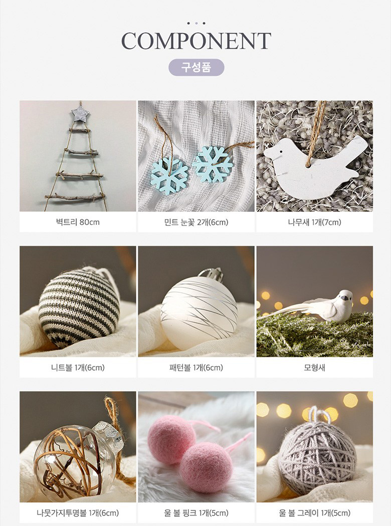 벽트리 80cm, 민트 눈꽃 2개(6cm), 나무새 1개 ,니트볼 1개 패턴볼 1개 모형새 ,나무가지투명볼 1개 ,울 볼 핑크