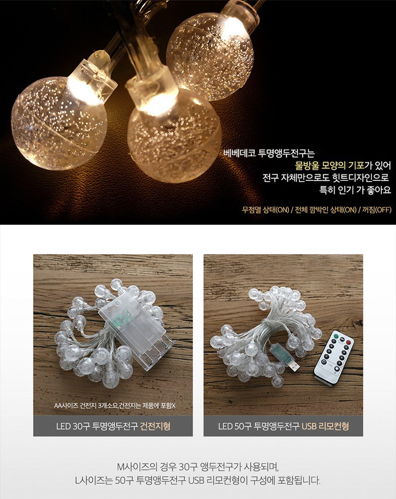 엘사이즌느 50구 투명애두전구 USB 리모컨형이 구성에 포함됩니다.