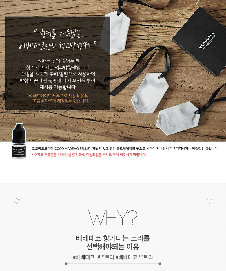 향기를 가득담은 베베데코만의 석고방향제로 원하는 곳에 걸어두어