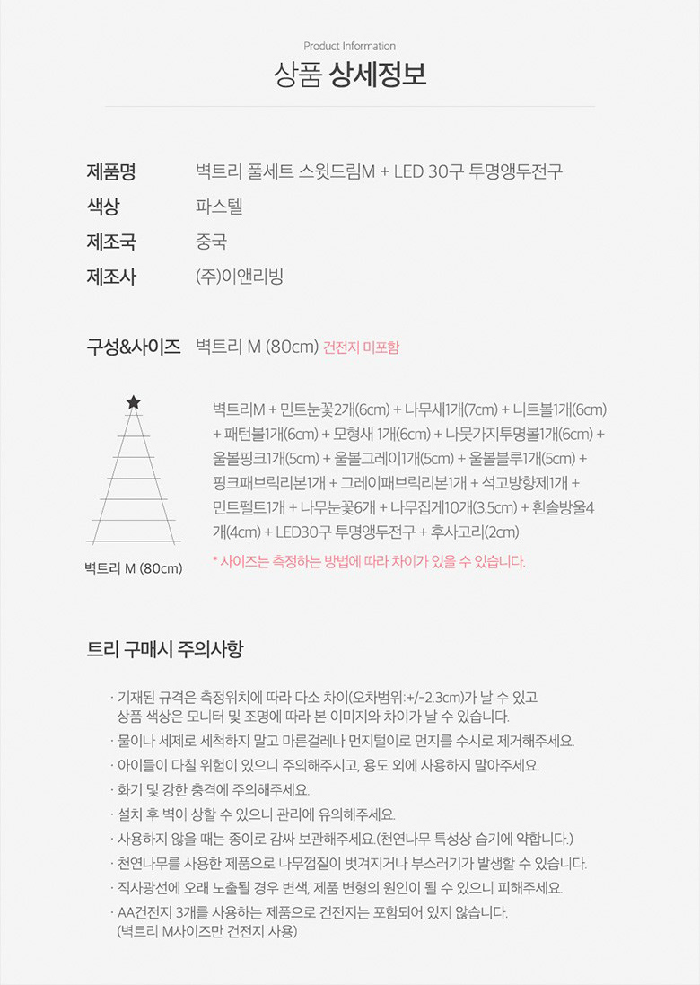 "베베데코 벽트리 풀세트 스윗드림 M + 투명앵두전구"