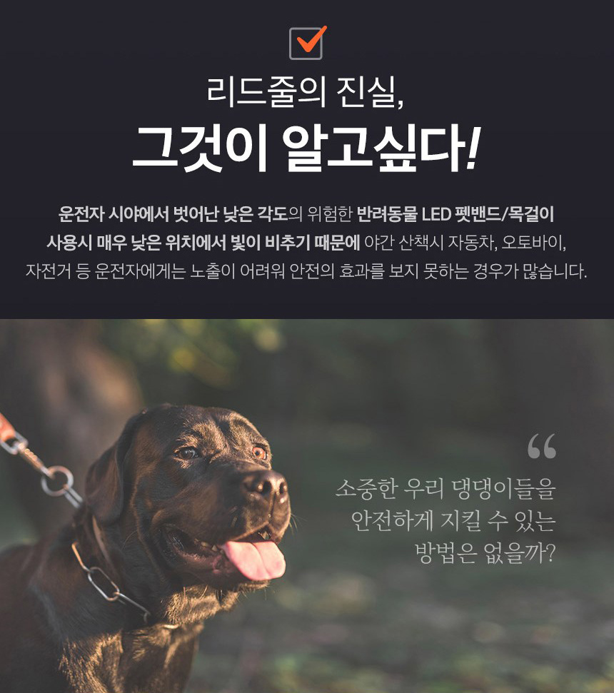 LED펫밴드,LED목걸이등 유사제품을 사용하더라도 매우 낮은 위치에서