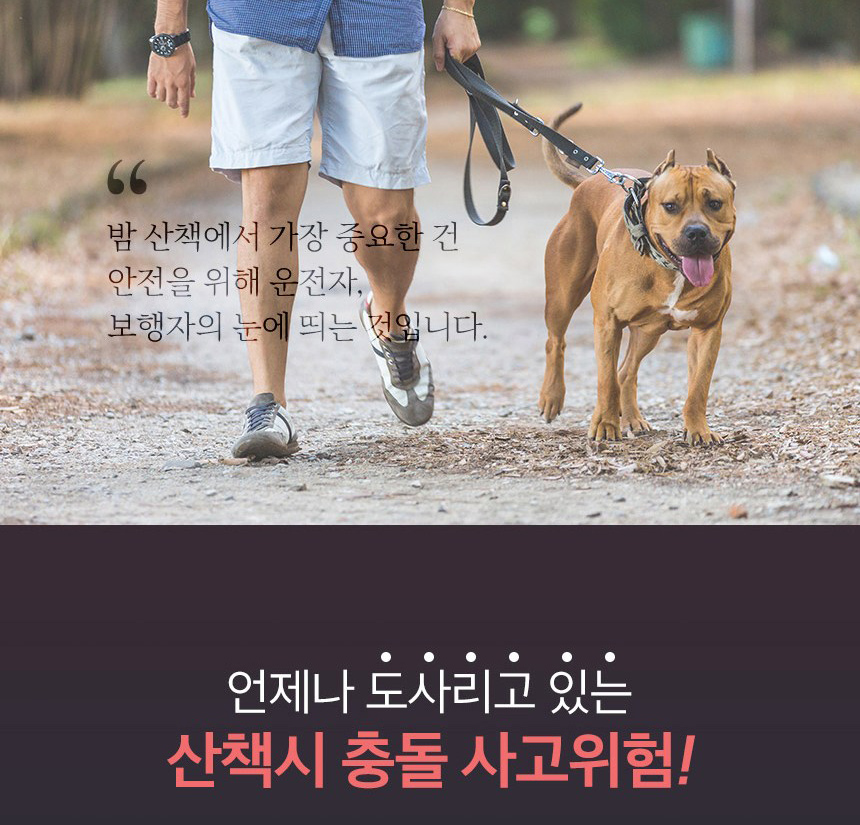 사용시 매우 낮은 위치에서 빛이 비추기 때문에 야간 산책시 자동차,오토바이,