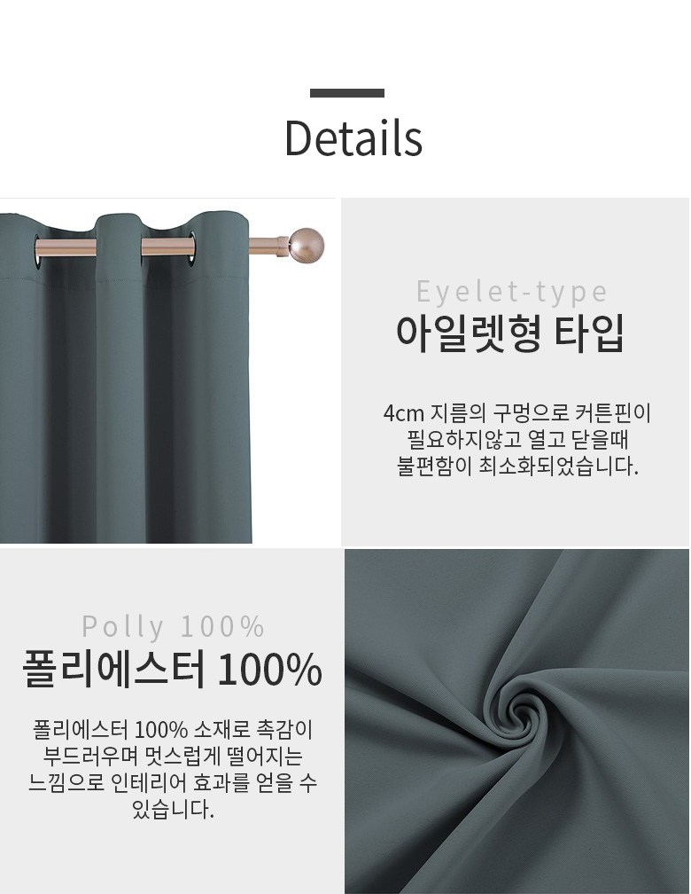 커튼의 색이 어두울수록 더 높은 암막 효과를 보실 수 있습니다.