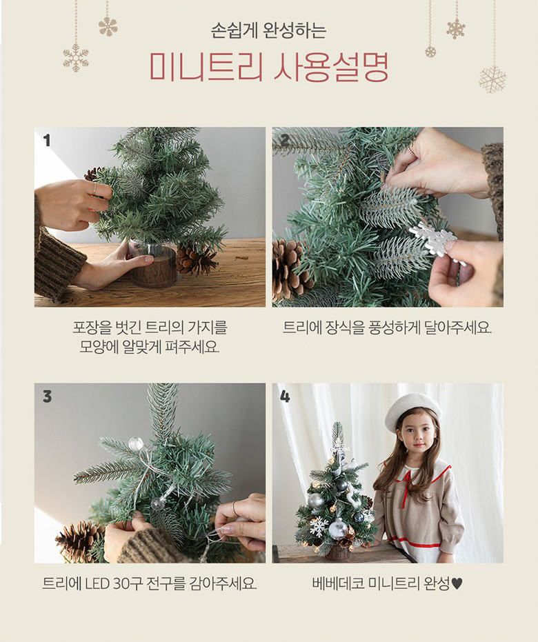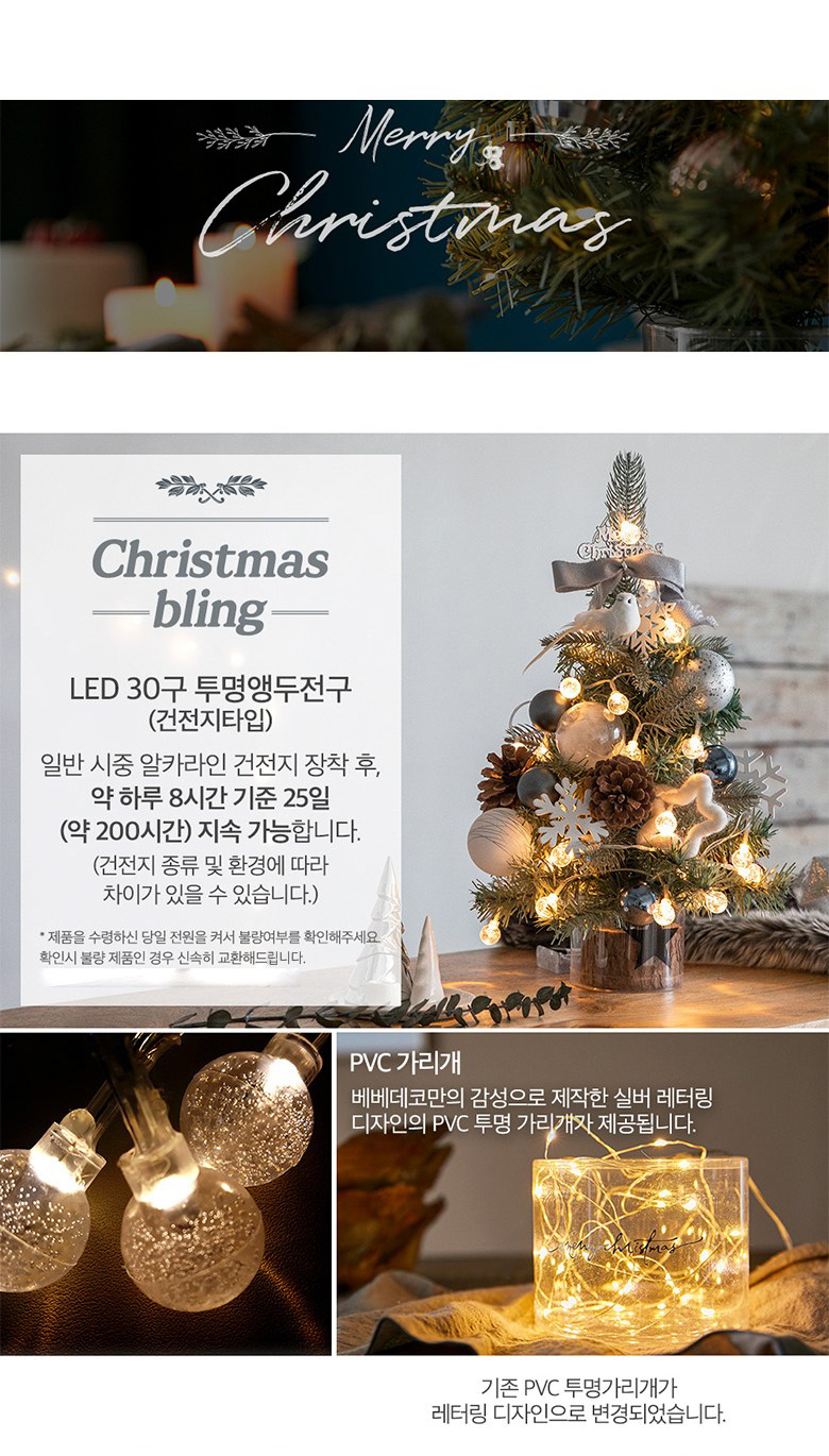 베베데코 크리스마스 미니트리 + 투명앵두전구 세트