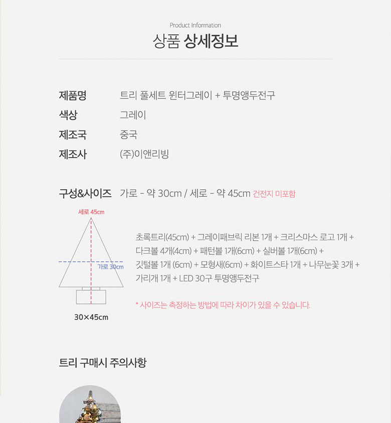제품명 : 트리 풀세트 윈터그레이 + 투명앵두전구