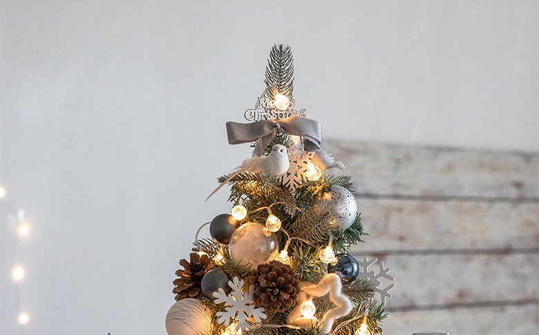 그레이쉬한 톤의 오너먼트로 북유럽풍의 모던한 감성 트리입니다.