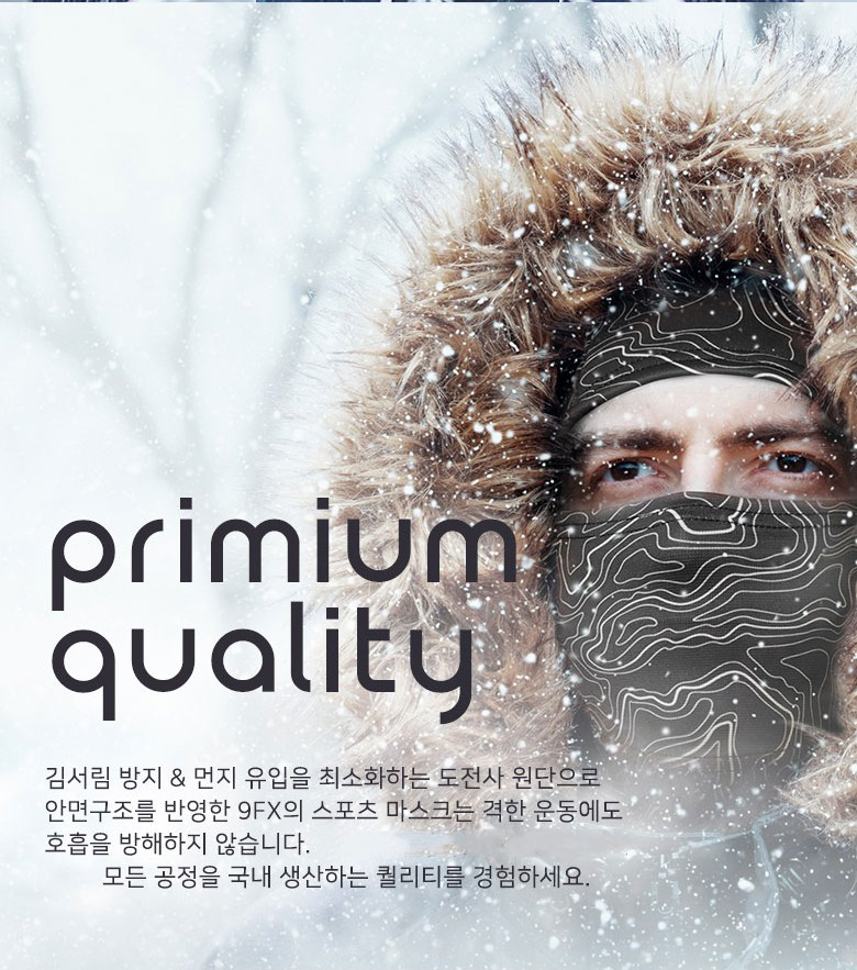 두꺼운 기모 원단은 호흡을 방해하지만,스포츠 브랜드 9FX의 노하우로 다양한 테스트를 거친 스포츠 마스크는