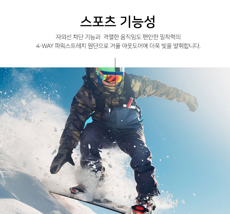4-WAY 파워스트레치 원단으로 겨울 아웃도어에 더욱 빛을 발휘합니다.