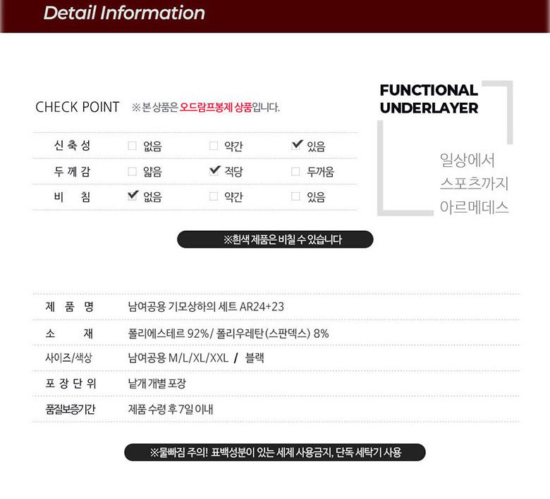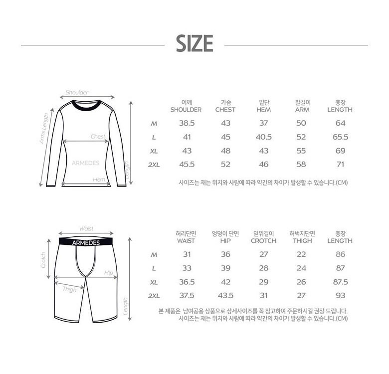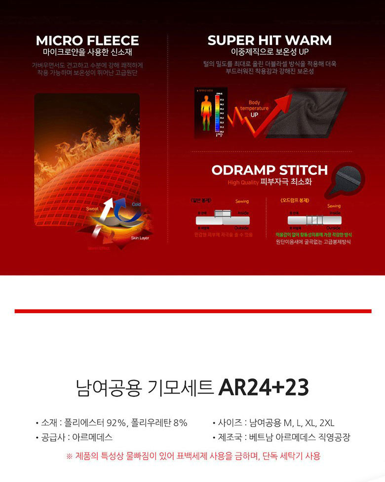 아르메데스 남여공용 기모상하의 세트 AR24 + 23