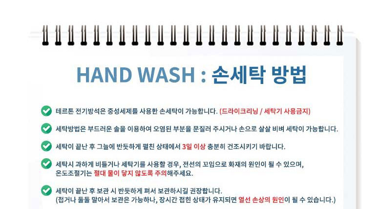 테르톤 전기방석은 중성세제를 사용한 손세탁이 가능합니다.
