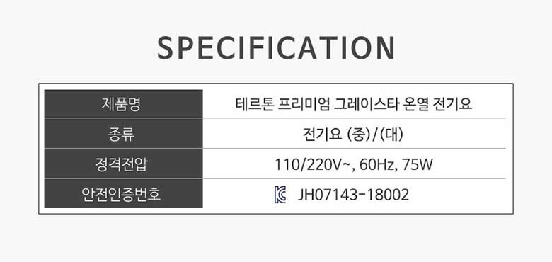 테르톤 프리미엄 그레이스타 전기요 WJ-s1000