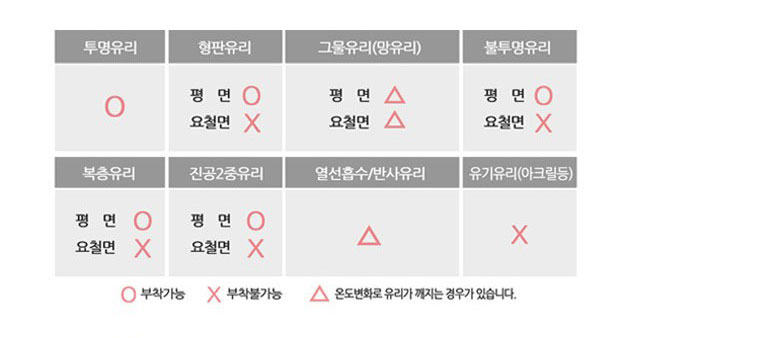 실외측 유리,물기가 많고 건조되지 않는곳,금이가 있거나 파손의 우려가 있는