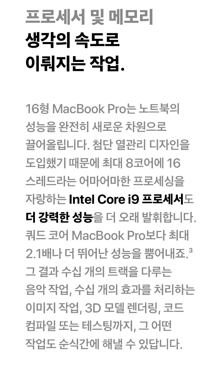 Intel Core I9프로세서도 더 강력한 성능을 더 오래 발휘 합니다.
