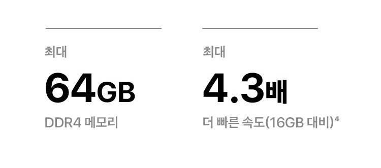 최대 64GB DDR4 메모리 / 최대 4.3배 더 빠른 속도