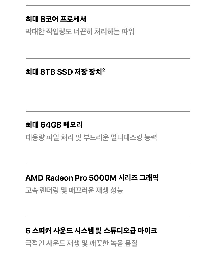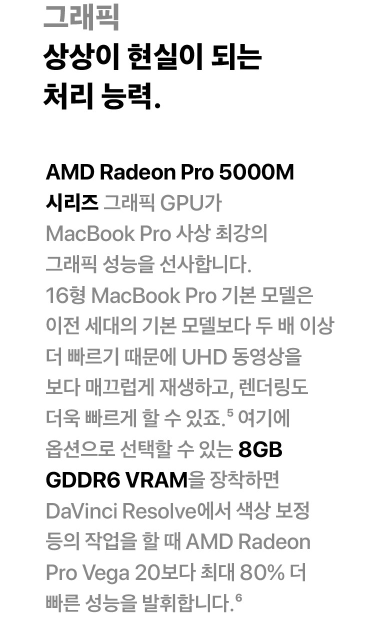 AMD Radeon pro 5000M시리즈 그래픽