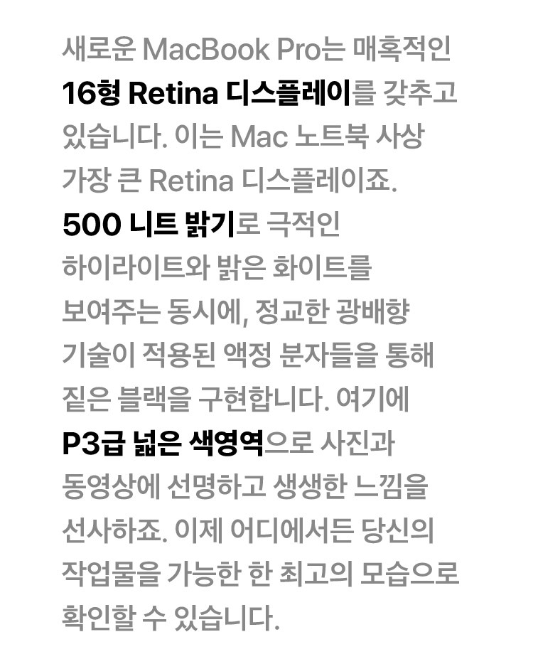 몰입감 넘치는 16형 Retina 디스플레이,
