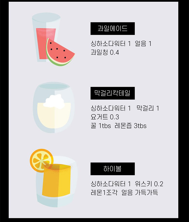 '싱하소다워터'처럼 아무것도 첨가하지 않은