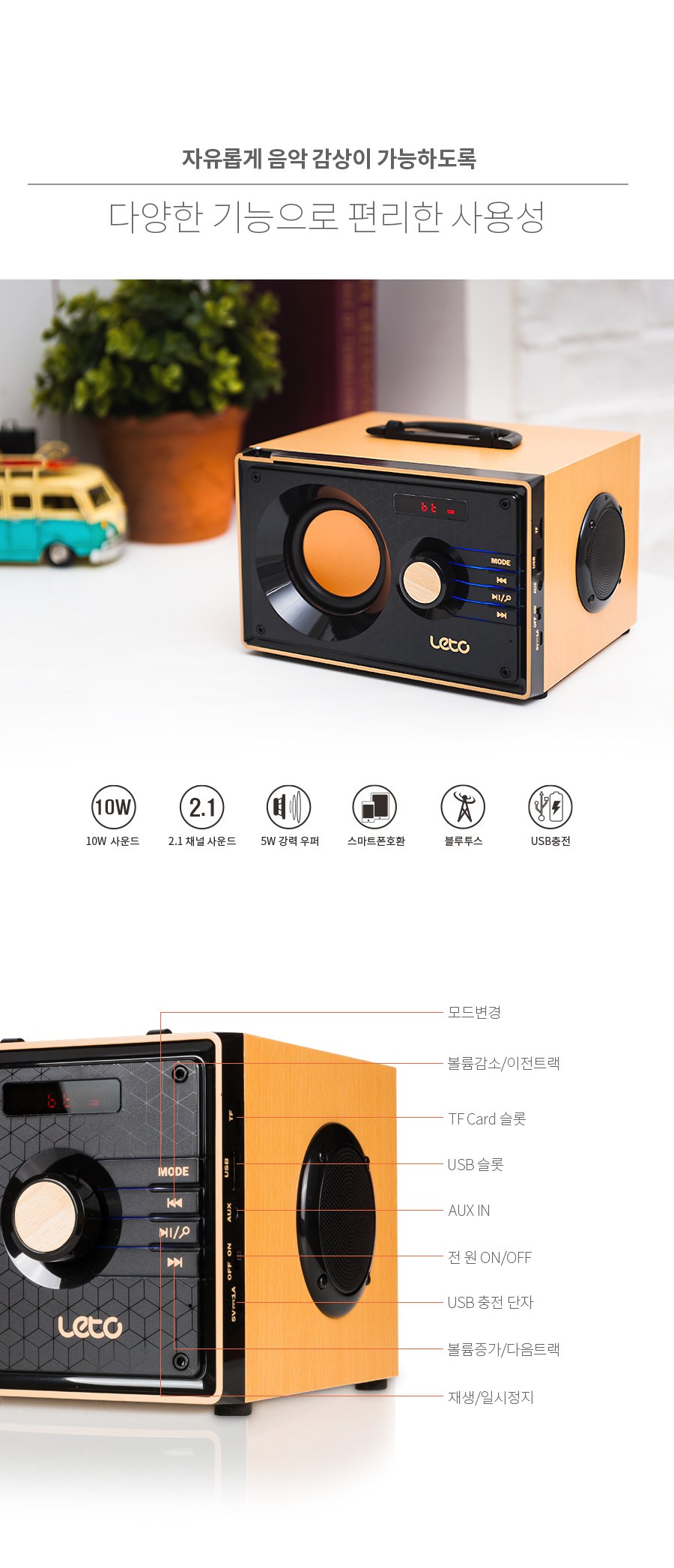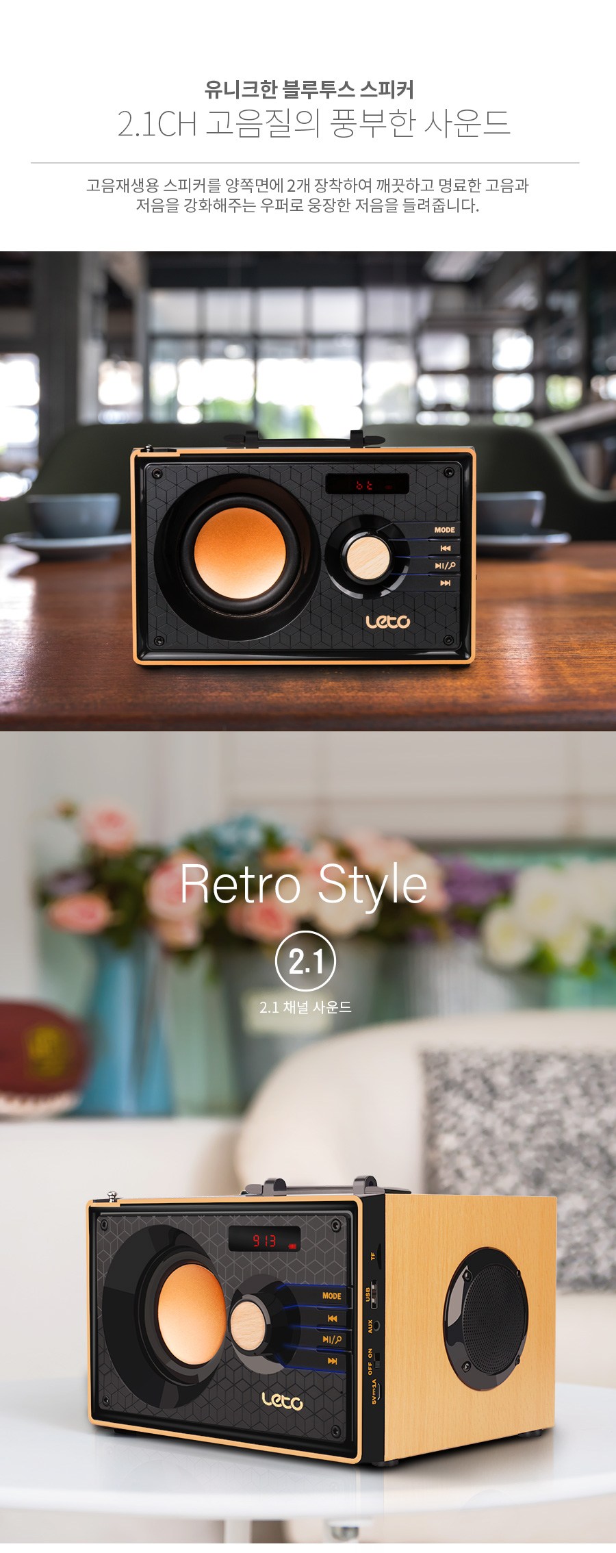 크기는 작아도 복고풍의 심플한 외형으로 품격을 아는 당신을 위한 특별한 스피커 입니다.
