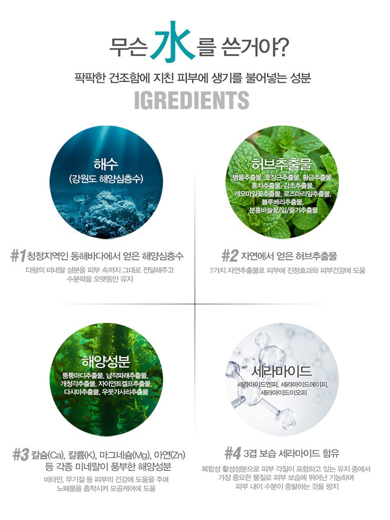 해양심층수와 세라마이드 성분으로 피부의 천연보습제 역활