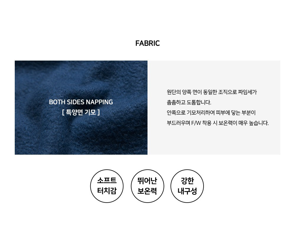 안쪽으로 기모처리하여 피부에 닿는 부분이