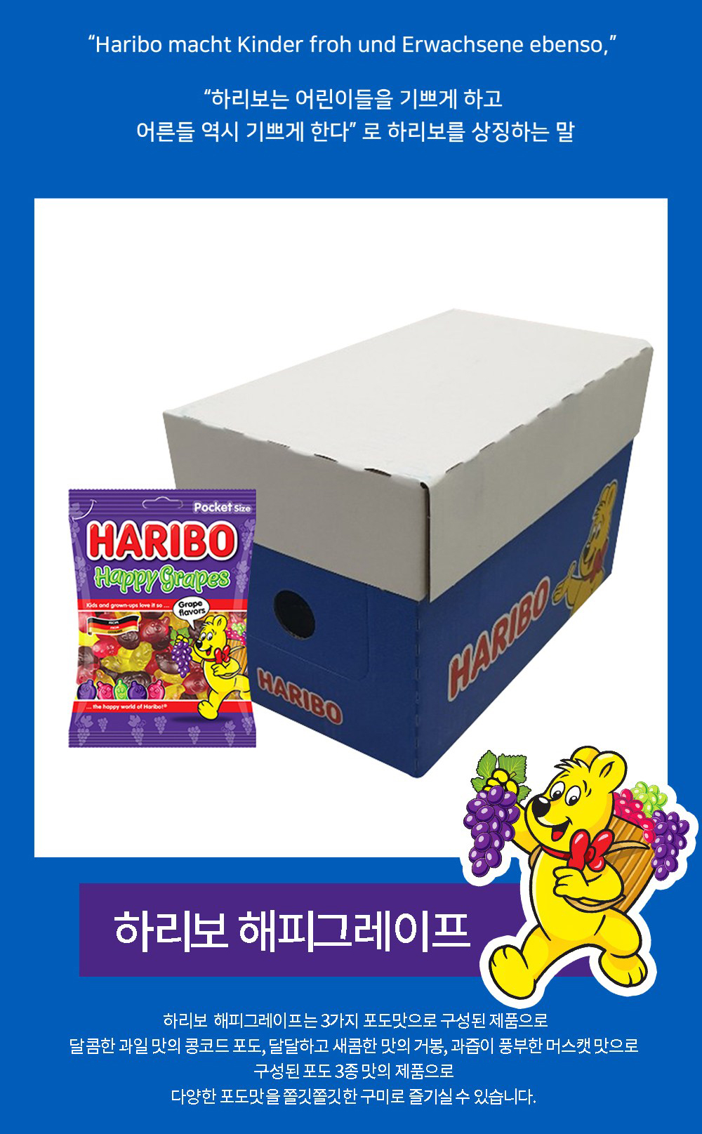 하리보 해피그레이츠는 3가지 포도맛으로 구성된 제품으로