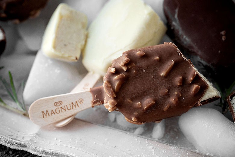 프리미엄 아이스크림인 매그넘은 바삭하게 부서지는