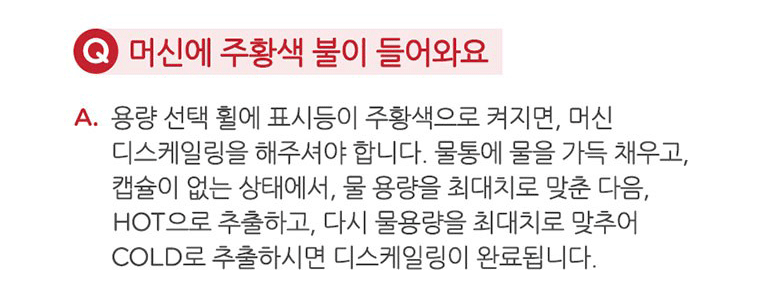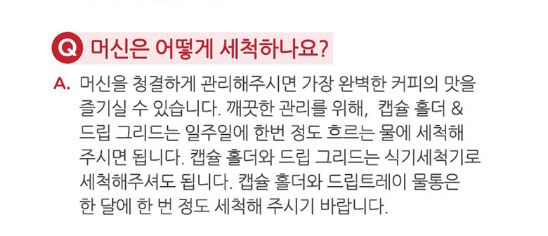 캡슐 홀더와 드립트레이 물통은 한 달에 한번 정도 세척해 주시기 바랍니다.
