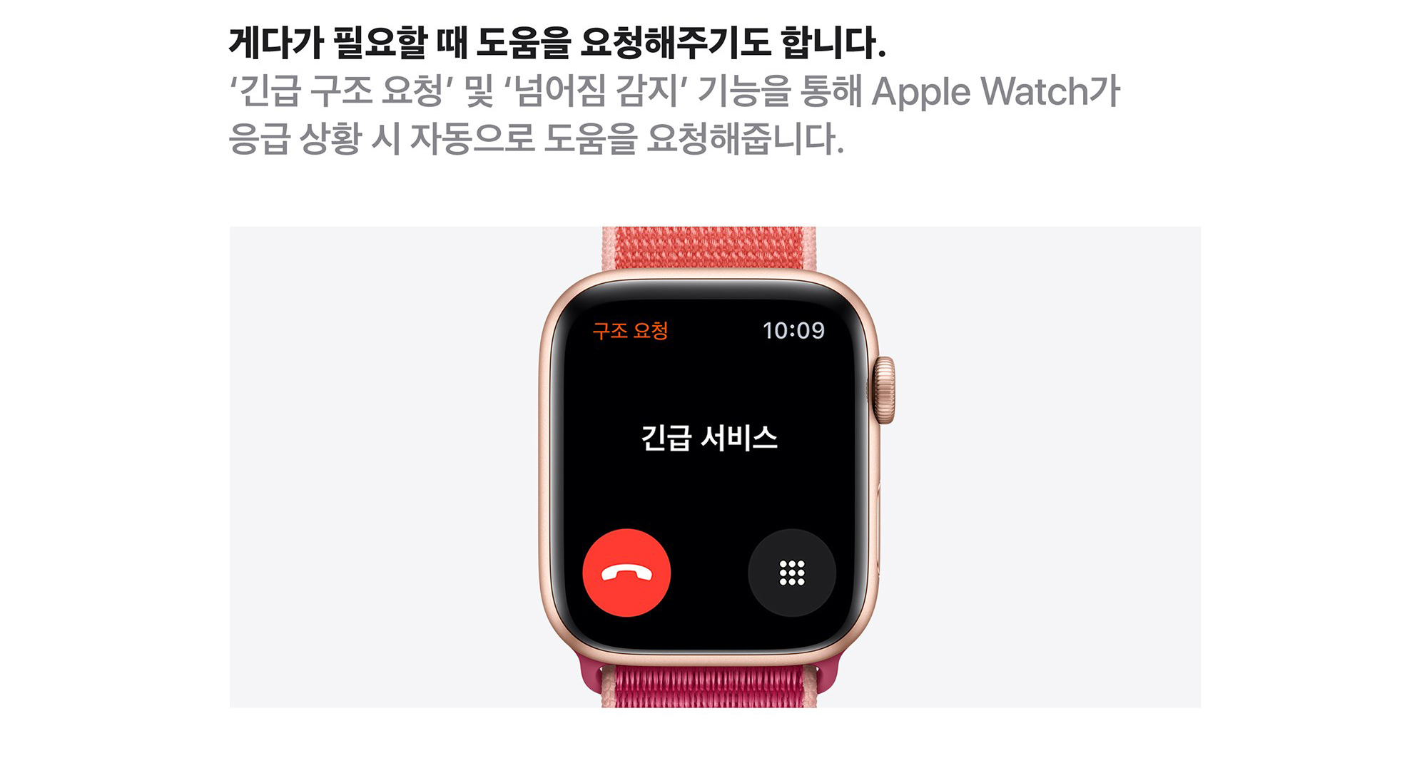 Apple Watch가 응급 상황 시 자동으로 도움을 요청해줍니다.