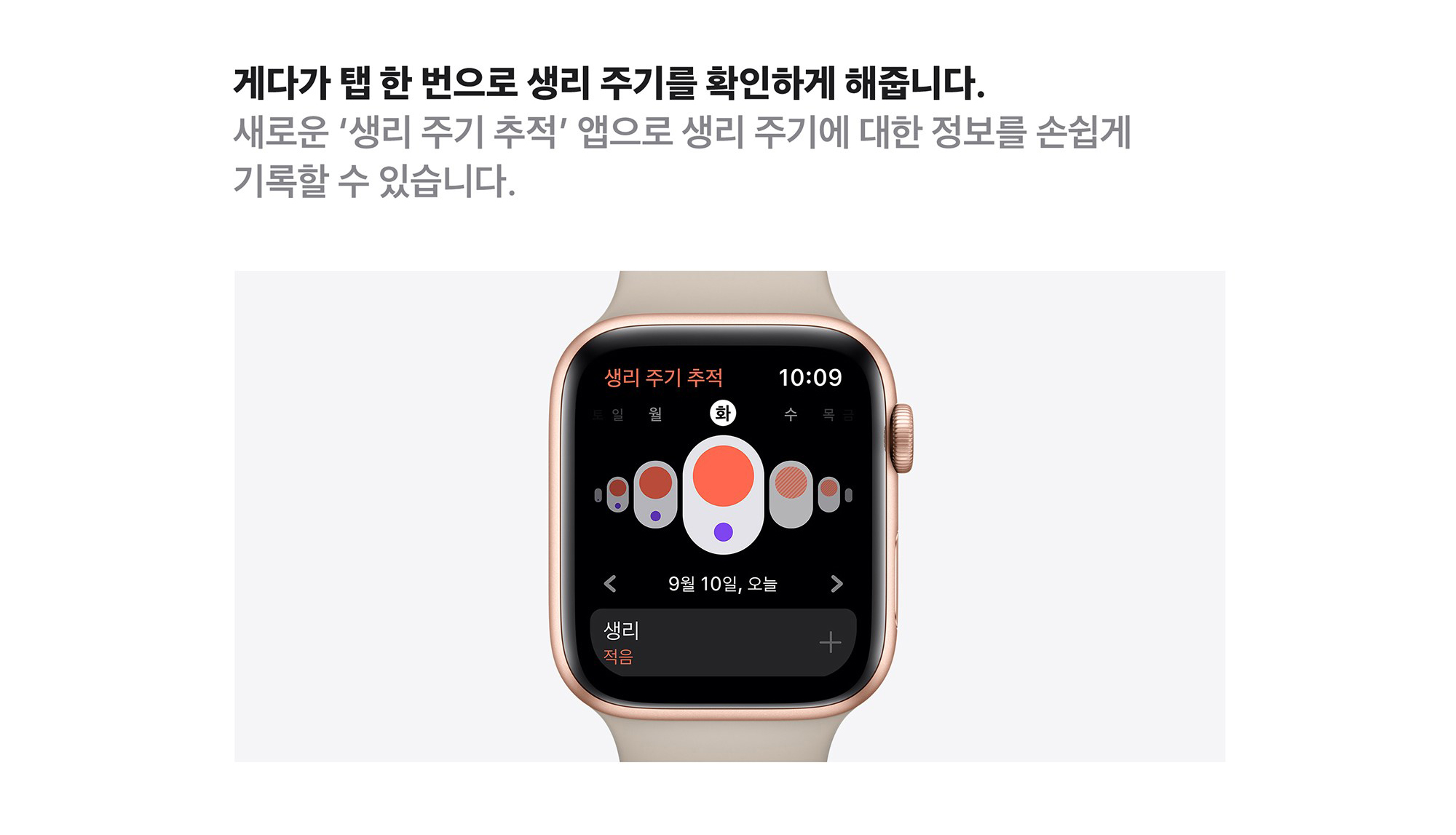 게다가 탭 한 번으로 생리주기를 확인하게 해줍니다.