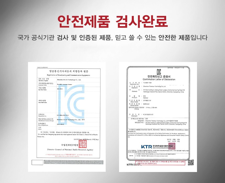국가 공식기관 검사 및 인증된 제품, 믿고 쓸 수 있는 안전한 제품입니다.