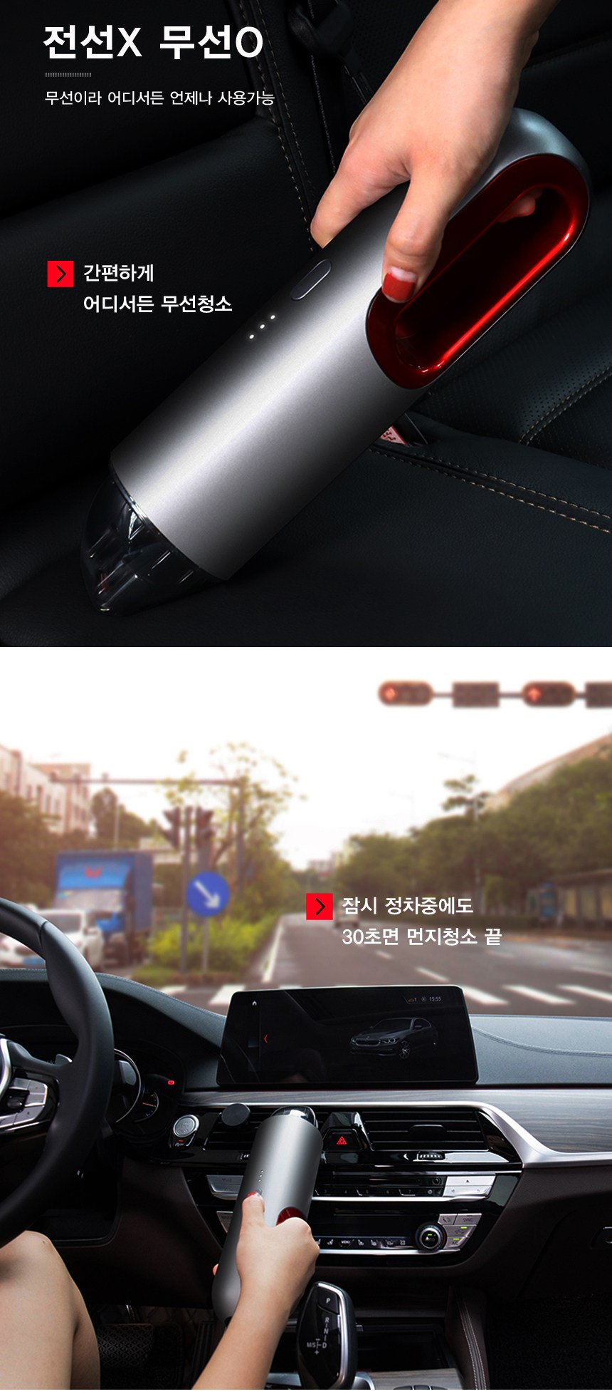 간편하게 잠시 정차중에도 30초면 먼지청소 끝!