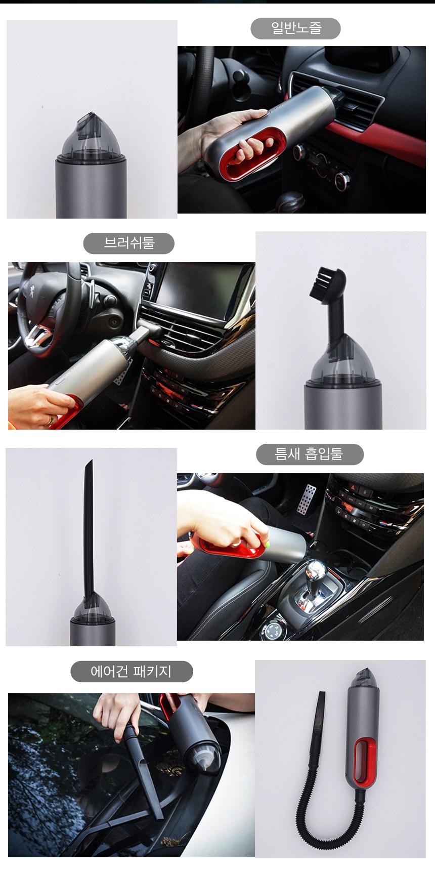 일반노즐은 물론 브러쉬툴 / 틈새 흡입툴 / 에어건 패키지까지