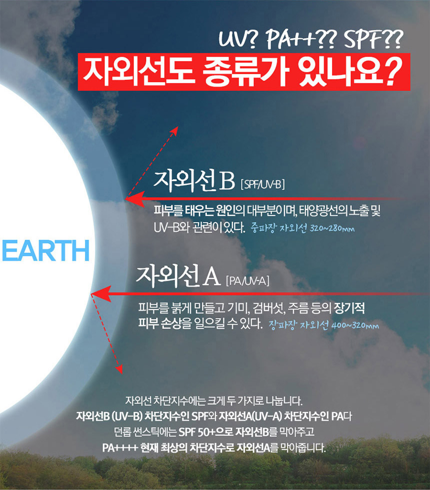 자외선B(UV-B) 차단지수인 SPF와 자외선A(UV-A) 차단지수인 PA