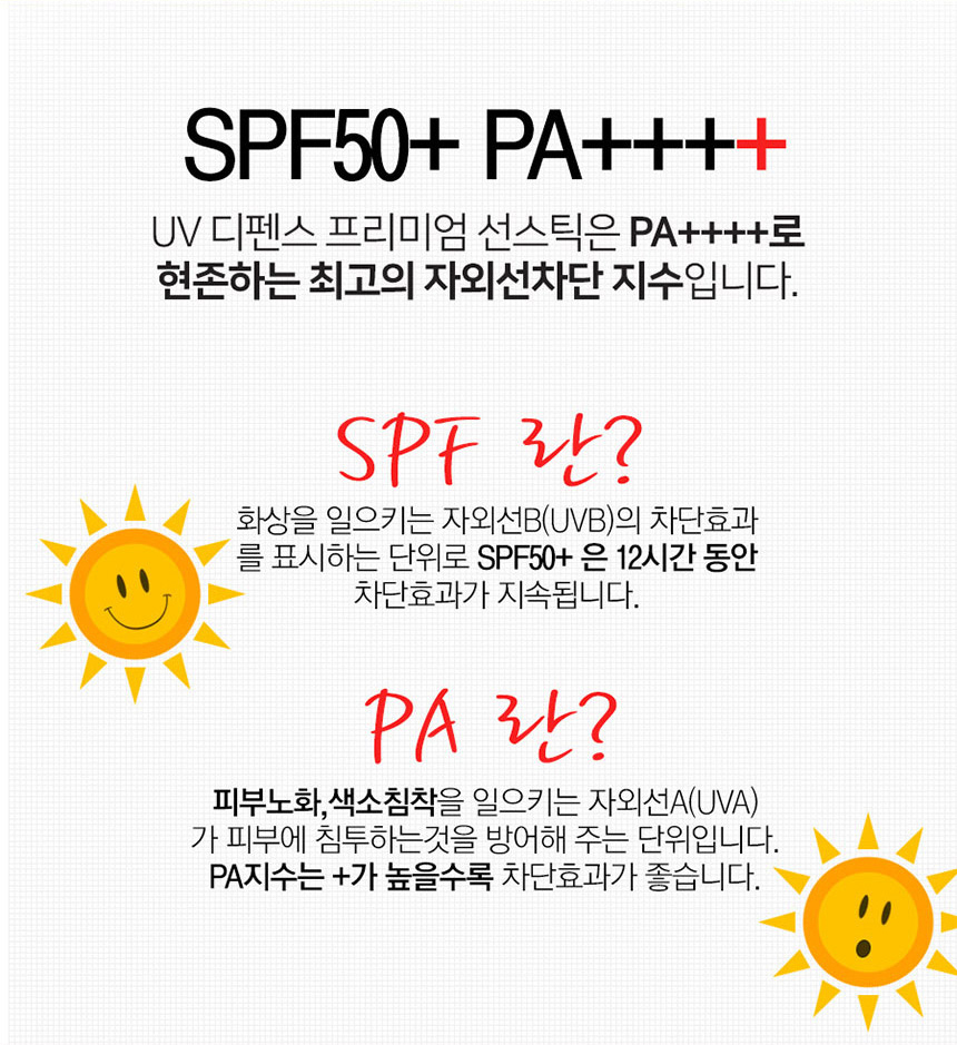 UV 디펜스 프리미엄 선스특은 PA++++로 현존하는 최고의 자외선차단 지수입니다.