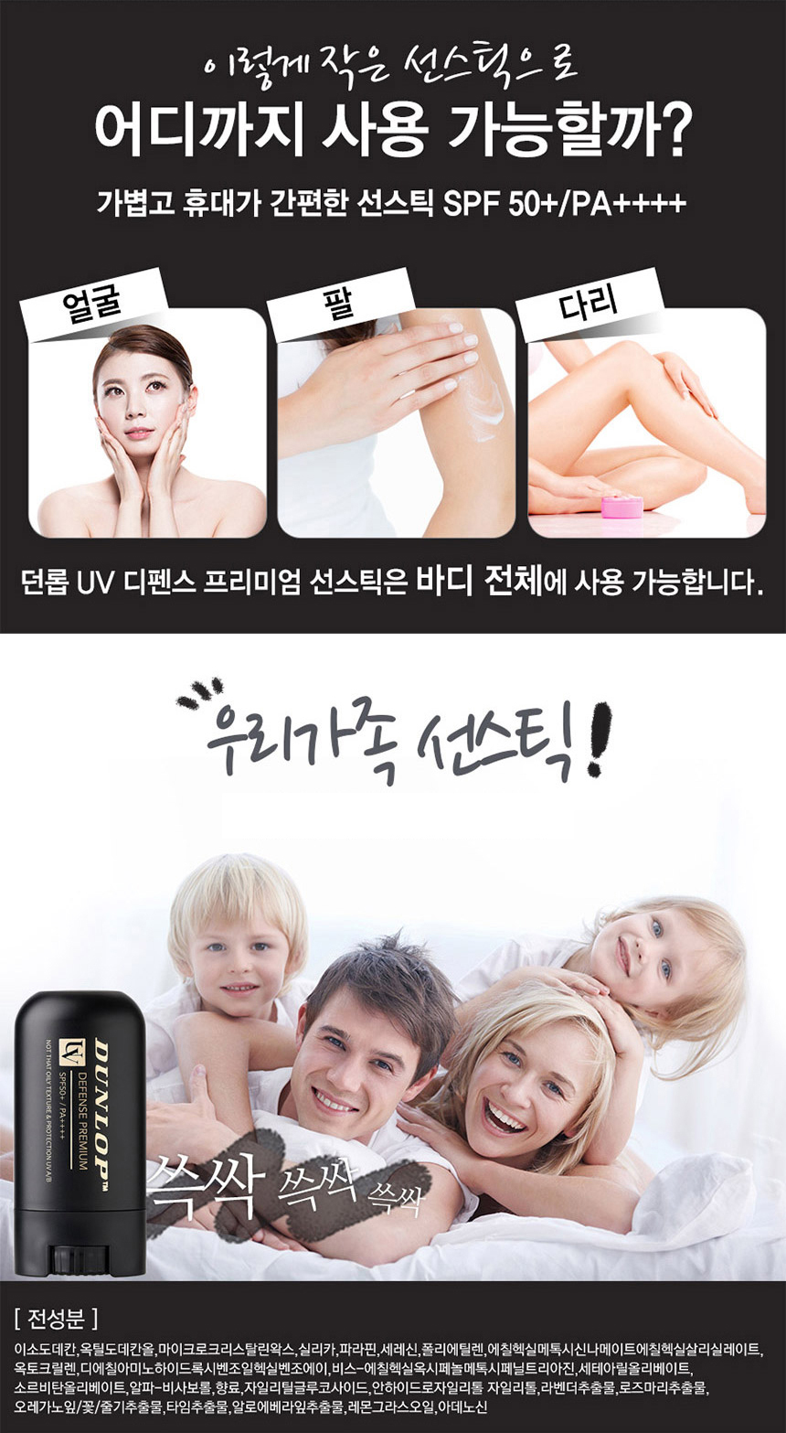 던롭 UV 디펜스 프리미엄 선스틱은 바디 전체에 사용 가능합니다.