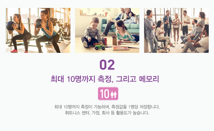 최대 10명까지 측정이 가능하며, 측정값을 1명당 저장합니다.