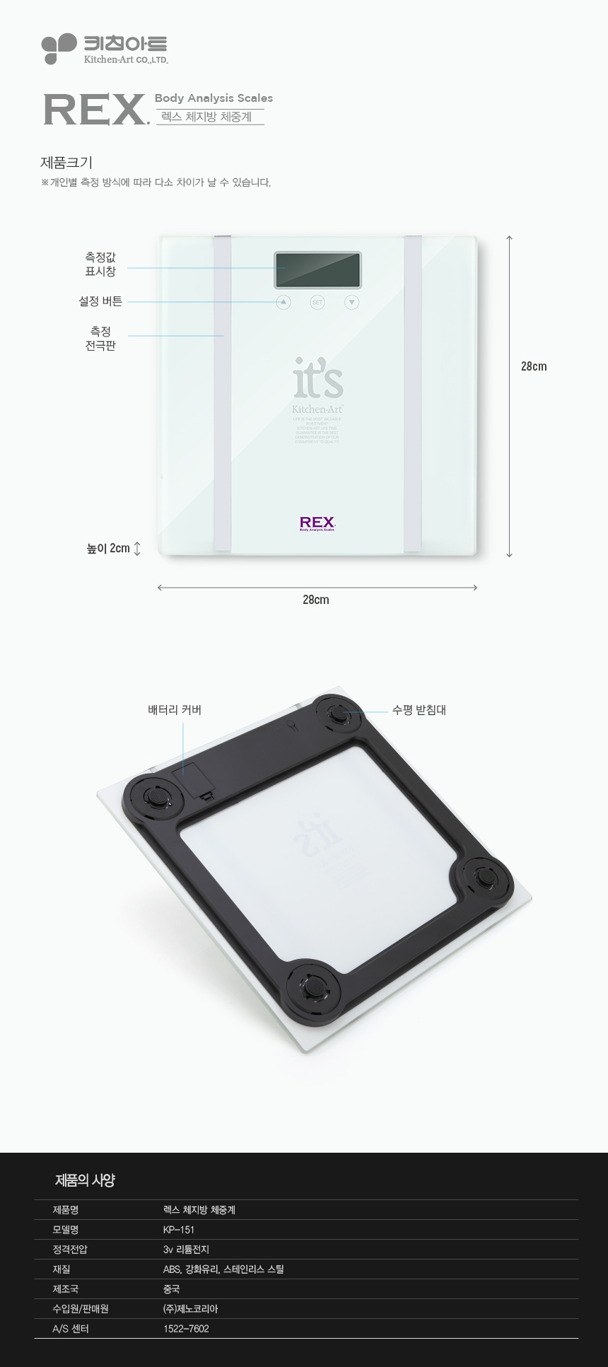 [키친아트] 렉스 체지방 체중계 KP-151 정품 무료배송