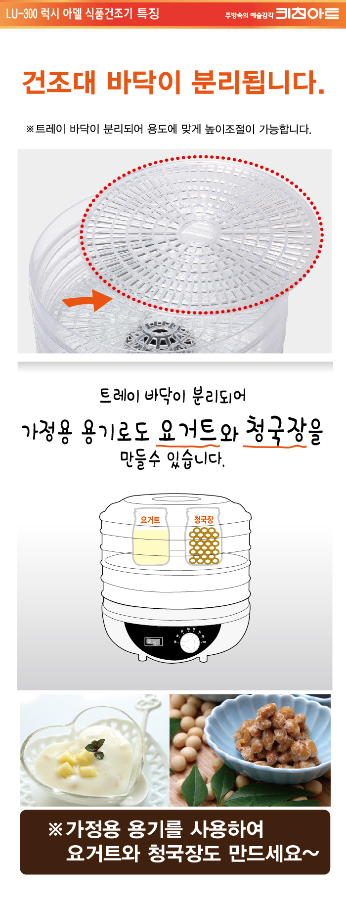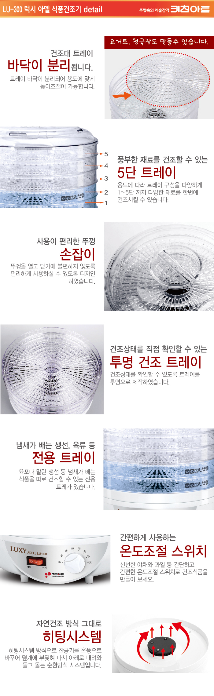 용도에 따라 트레이 구성을 다양하게 1~5단까지 다양한 재료를 한번에 건조시킬 수 있습니다.