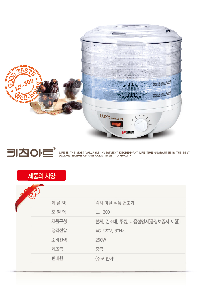제품구성: 본체, 건조대, 뚜껑, 사용설명서(품질 보증서 포함)