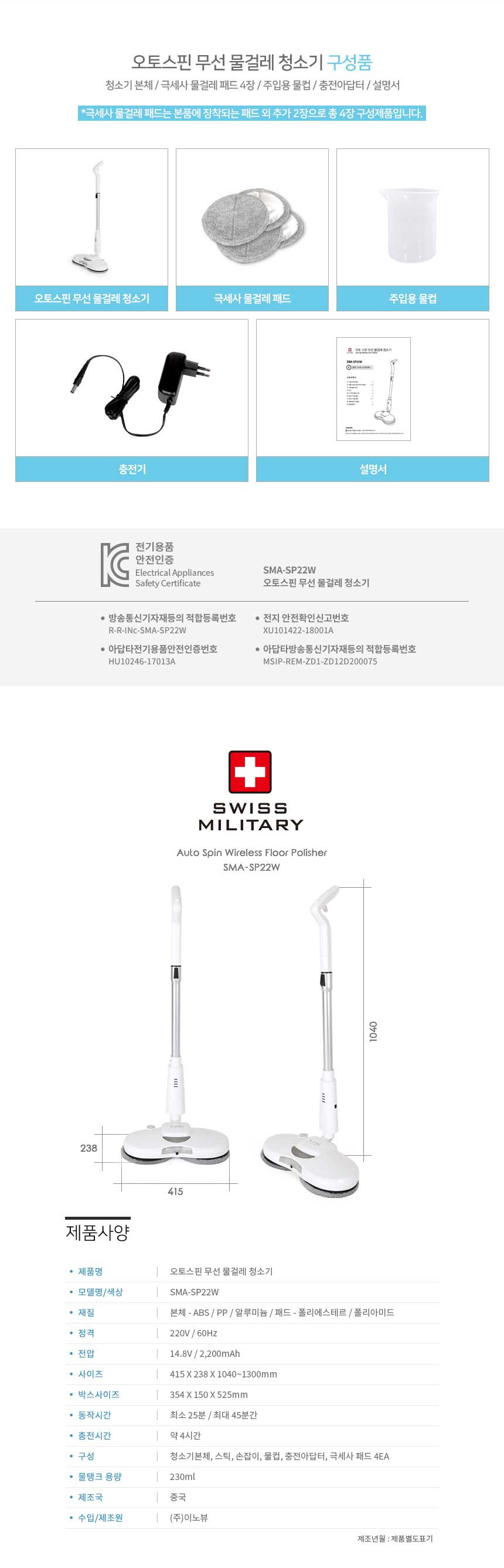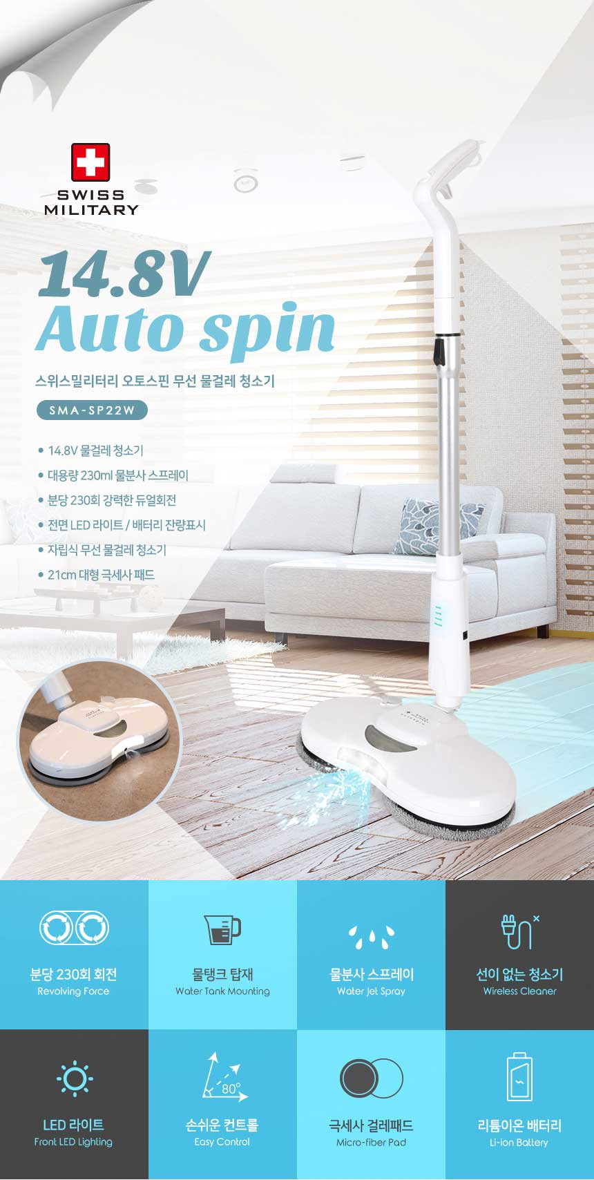 스위스밀리터리 오토스핀 무선 물걸레 청소기